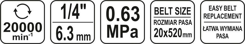 YATO Шліфмашина пневматична стрічкова 20х520 мм, роб.тиск-6,3 Bar