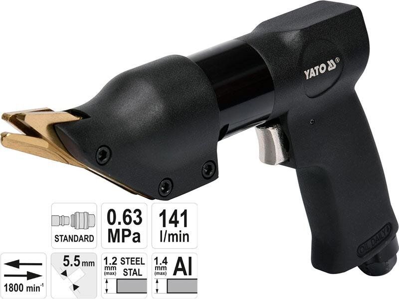 YATO Ножиці пневматичні кутові по листовому металу t≤ 1.4 мм, при тиску- 0,63 MPa, 141 л/хв