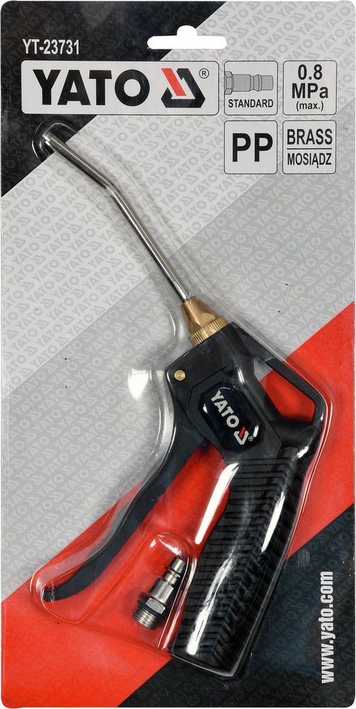 Пістолет YATO YT-23731 з подовжувачем для продування стиснутим повітрям. Ідеально підходить для видалення бруду та пилу з машин, пристроїв та двигунів, а також для використання в домашній майстерні та гаражі.