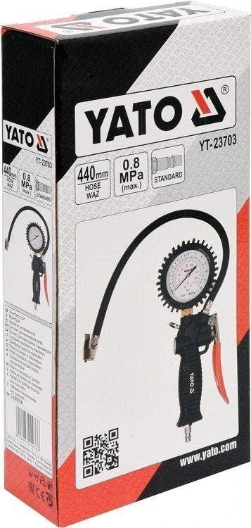 Пистолет для накачивания шин YT-23703 от YATO это удобный и практичный инструмент для периодического обслуживания автомобиля. Прочные материалы конструкции и наличие информативного манометра выделяют устройство. Основными преимуществами выступают: