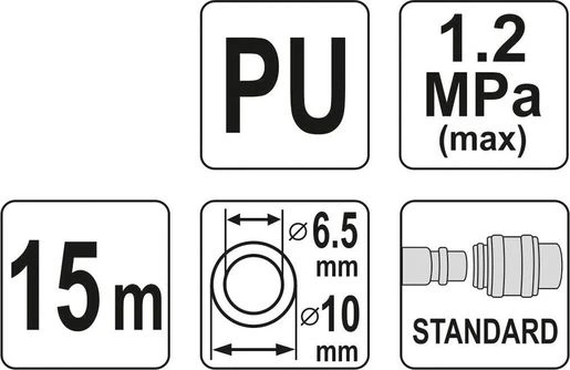 YATO Шланг пневматичний спіральний швидкоз'єднуваний: Ø= 6.5/10 мм, ≤12 Bar, l= 15 м. поліуретан.
