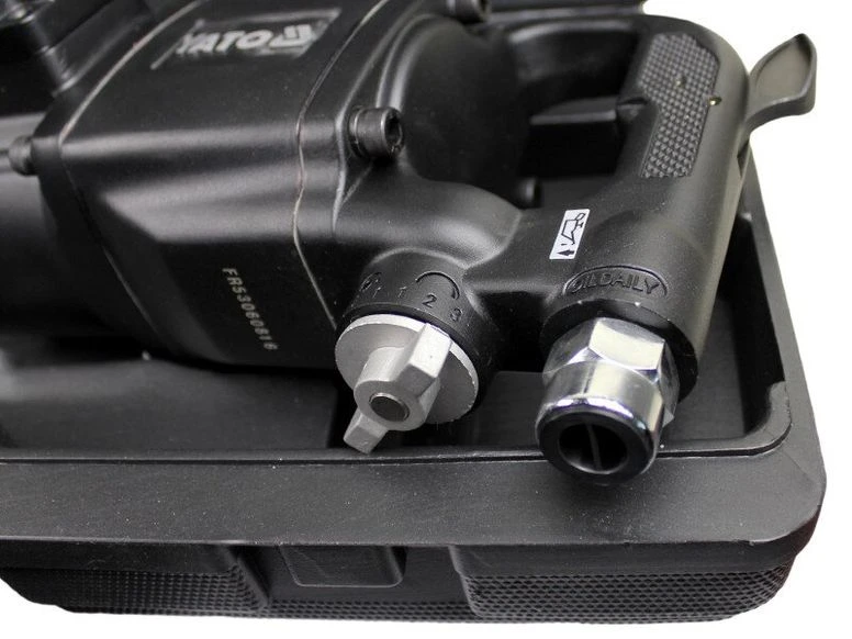 Пневматический гайковерт YATO YT-0959 имеет эффективный ударный механизм PINELESS HAMMER, который работает с силой 2600 Нм, потребляя около 560 литров воздуха в минуту.