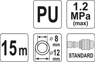 YATO Шланг пневматичний спіральний швидкоз'єднуваний: Ø= 8/12 мм, ≤12 Bar, l= 15 м. поліуретан.