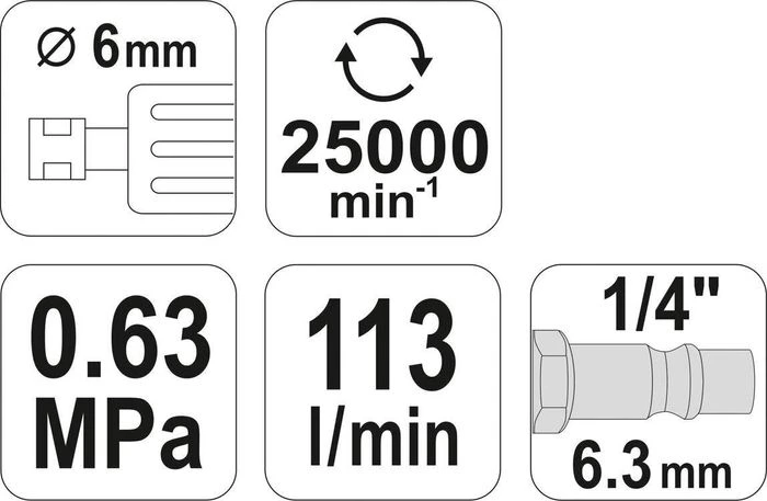 - Шпиндель: 6 мм.