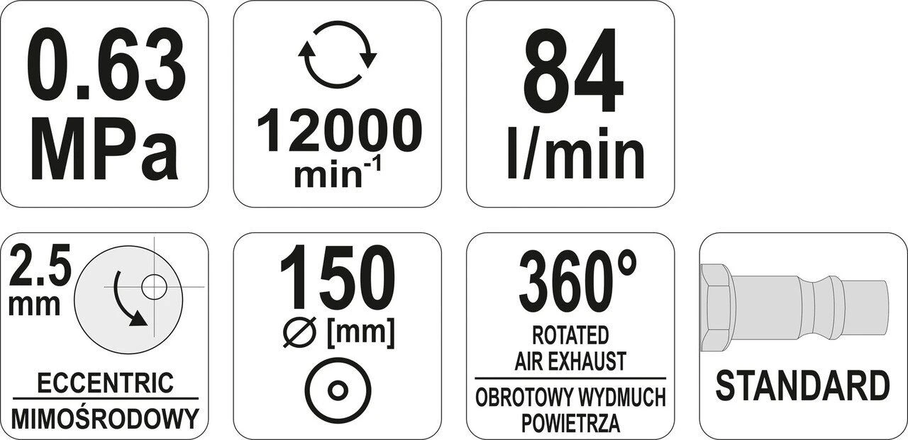 Эксцентриковая пневматическая шлифмашина YATO YT-09739 питается от струи сжатого воздуха под давлением. Благодаря абразивным средствам, накладываемым прямо на диск позволяет выполнять шлифовку и полировку различных материалов. Применяется в автомобильных сервисах и в промышленности.