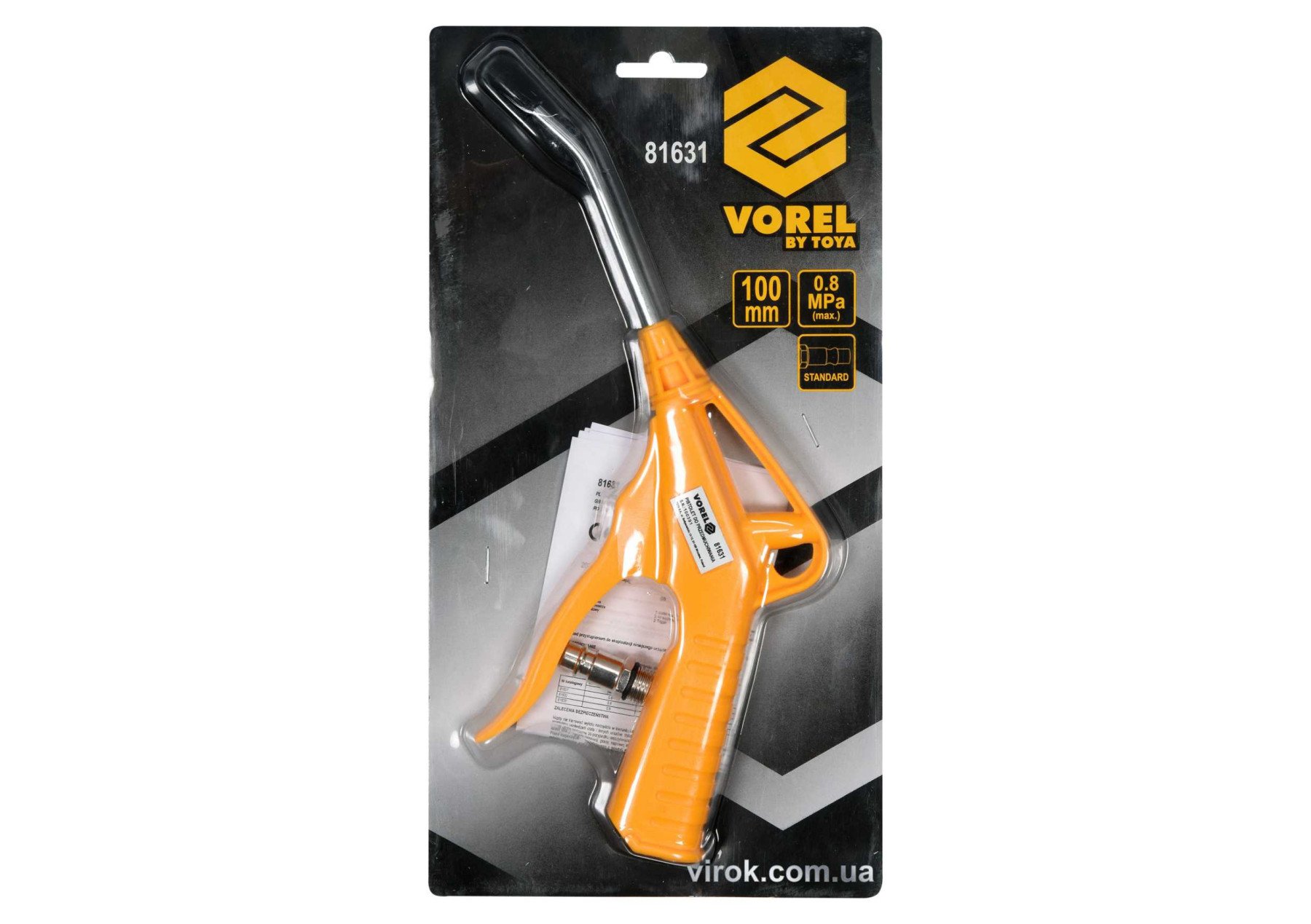 ПІСТОЛЕТ ПНЕВМАТИЧНИЙ ПРОДУВАЛЬНИЙ VOREL З СОПЛОМ 100 ММ, Ø=1/4", ДЛЯ ТИСКУ 0.8 МПА