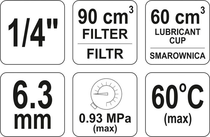 Фільтр пневмат. подвійн. YATO з редуктором, d= 1/4", 90см3 [25]