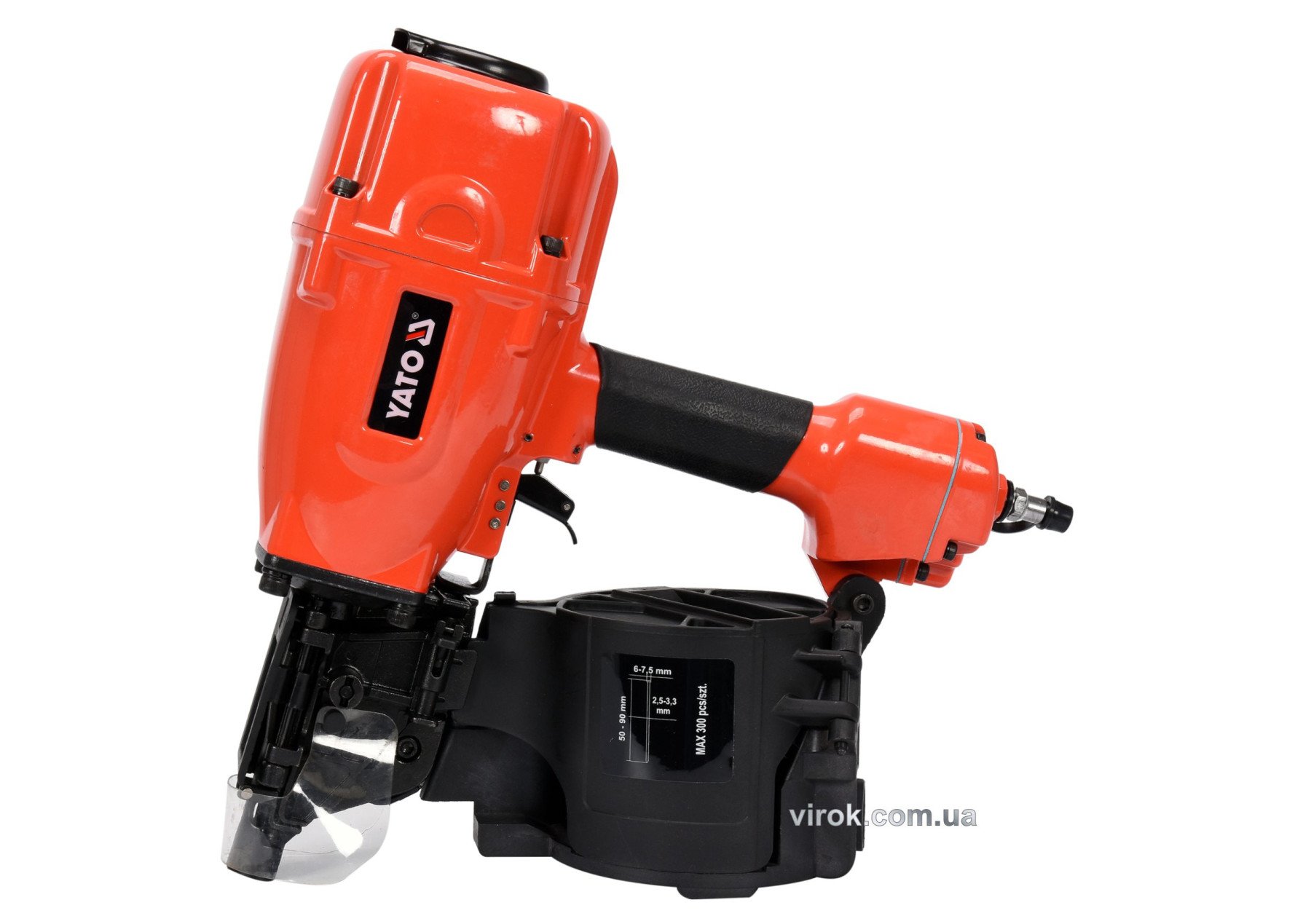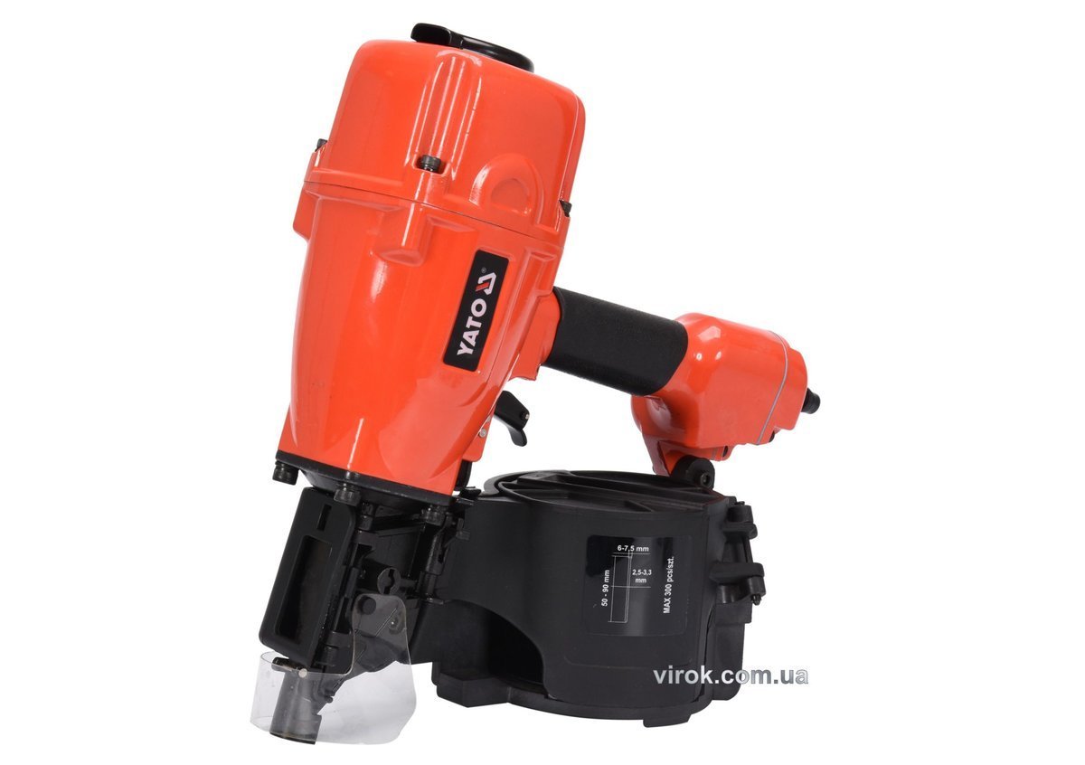 YATO Пістолет цвяхозабивний, пневматичний, барабанний YATO для цвяхів t= 2.5-3.3 мм, h=50-9мм, 8 Bar | YT-09214