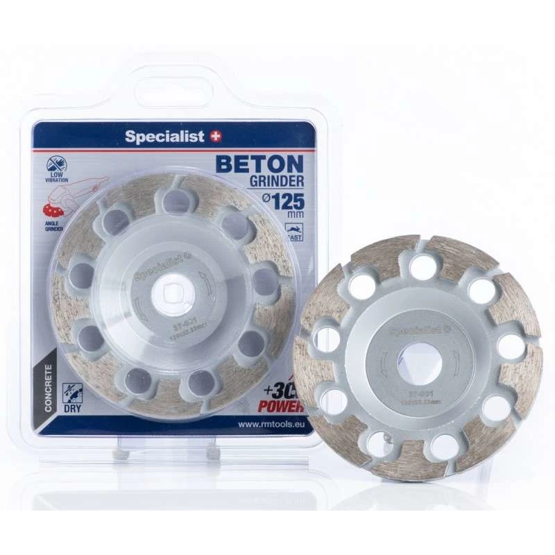 Необхідний інструмент для шліфування бетону. Диск призначений для використання з кутовою шліфувальною машиною 125 мм без води. Зазвичай, такий диск використовують для матеріалів середньої твердості, таких як бетон, цегляна кладка, камінь, бетонні вироби.