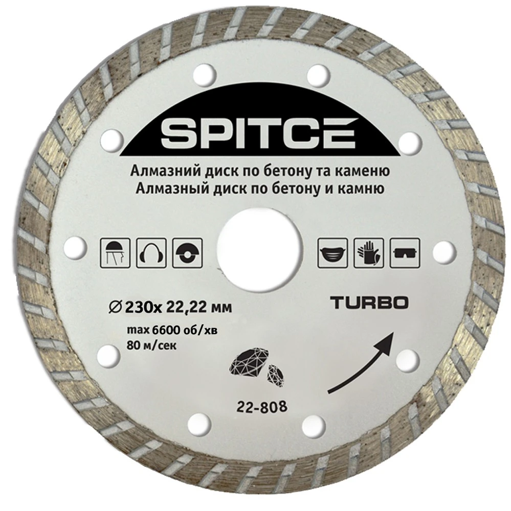 Алмазний диск 'TURBO' призначений для швидкого різання бетону, цегли, бруківки та каменю. Завдяки хвилястій формі ріжучого шару, диск під час роботи краще охолоджується повітрям, тому його можна використовувати для сухого різу. Також диском можливо різати бетон з додаванням води для охолодження, що значно збільшить термін служби диску. Ріжуча частина має функцію самозаточування, забезпечує високу продуктивність різання, при якому ріжуча кромка самовідновлюється за рахунок видалення зношених і вивільнення нових алмазних елементів. Диски 'TURBO' найкраще підходять для робіт з бетоном, бруківкою, камнем.