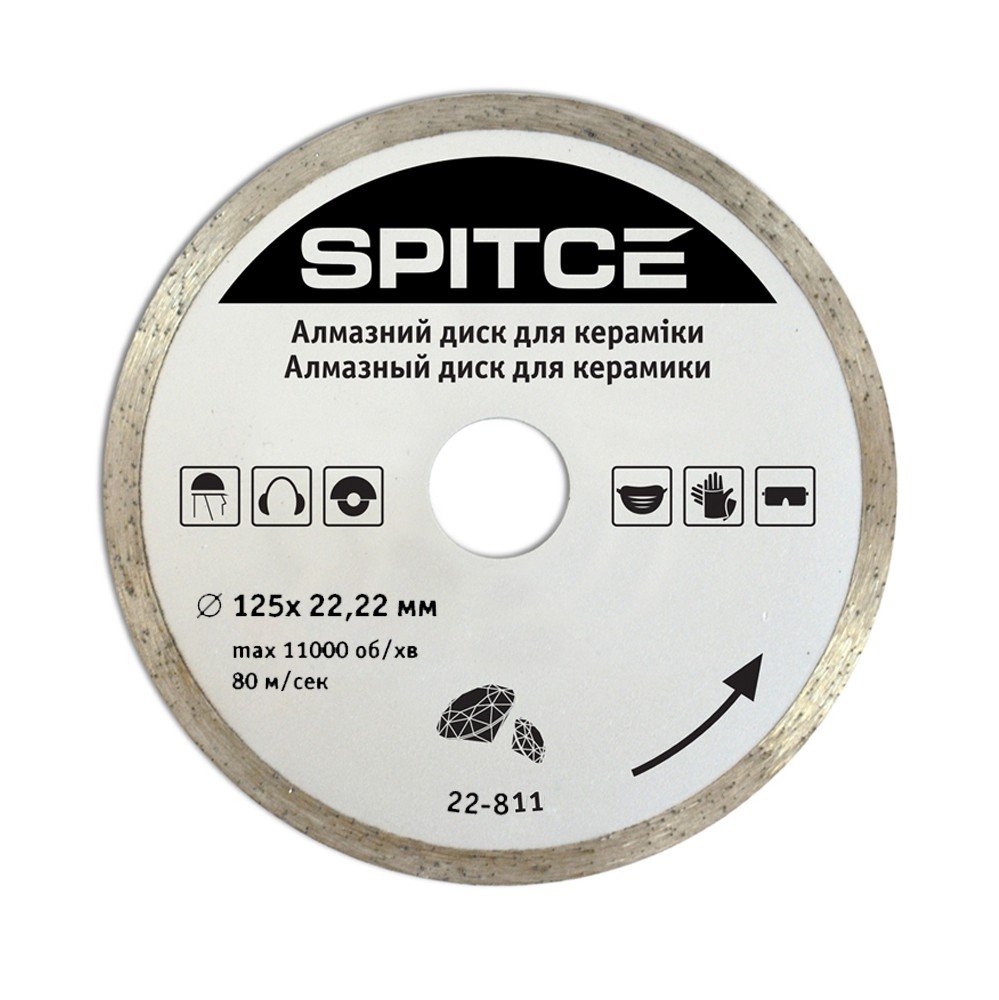 Алмазний диск для кераміки призначений для чистового різання кераміки, мармуру та каменю. При використанні диску по кераміці, необхідно забезпечити доступ води в місце різу для охолодження диску та матеріалу, що оброблюється. Алмазний відрізний диск має безперервний алмазний шар, що дозволяє добитися рівного зрізу без сколів. Ріжуча частина має функцію самозаточування, забезпечує високу продуктивність різання, при якому ріжуча кромка самовідновлюється за рахунок видалення зношених і вивільнення нових алмазних елементів. Використовується з кутовою шліфувальною машиною, ручним електричним плиткорізом, штроборізом.