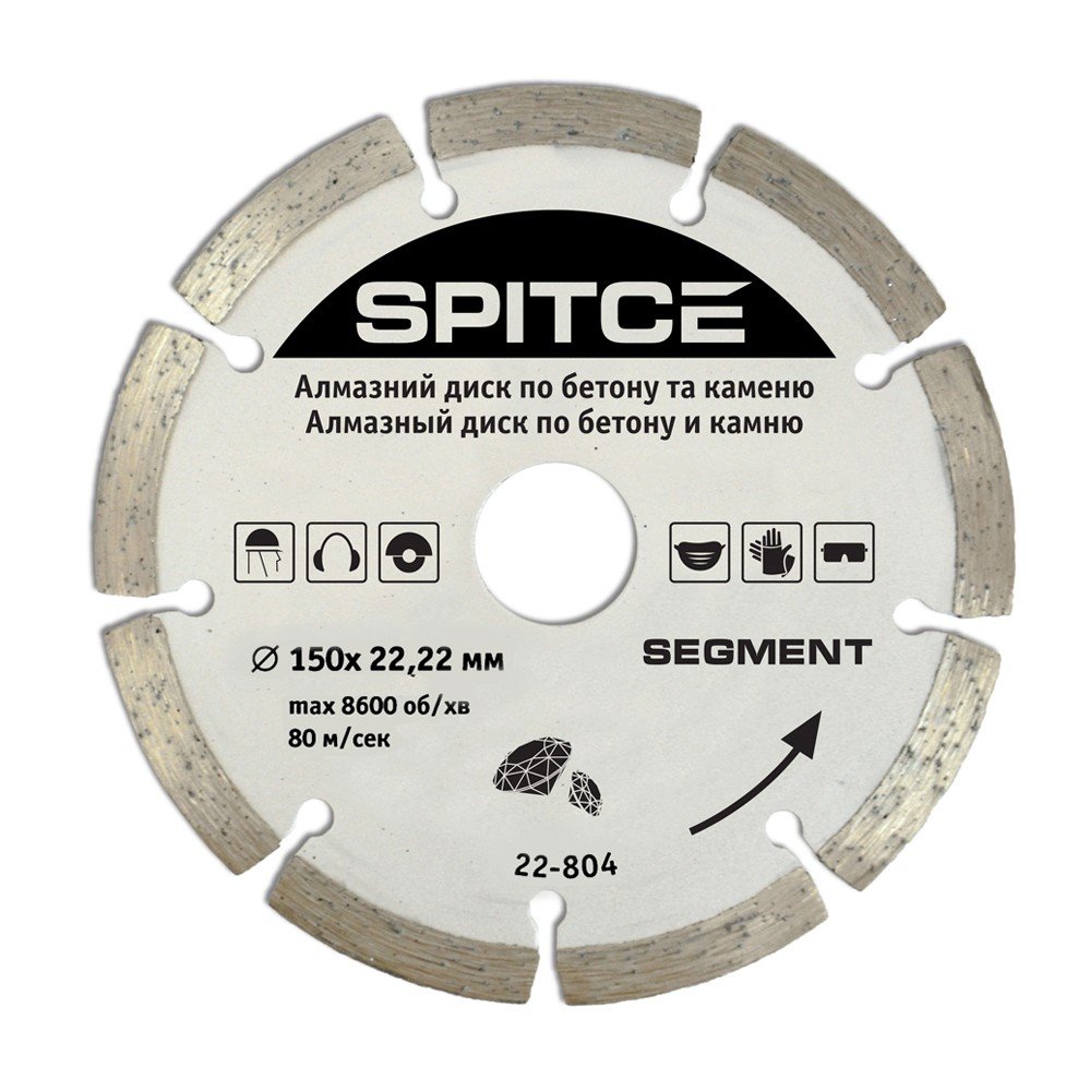 Алмазний диск 'SEGMENT' призначений для швидкого різання бетону, цегли та каменю. Завдяки сегментам диск під час роботи краще охолоджується повітрям, тому його можна використовувати для сухого різу. Сегментні диски найкраще підходять для робіт з бетоном.