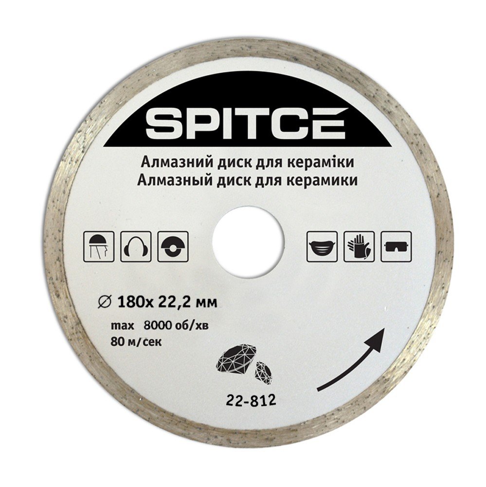 Алмазний диск для кераміки призначений для чистового різання кераміки, мармуру та каменю. При використанні диску по кераміці, необхідно забезпечити доступ води в місце різу для охолодження диску та матеріалу, що оброблюється. Алмазний відрізний диск має безперервний алмазний шар, що дозволяє добитися рівного зрізу без сколів. Ріжуча частина має функцію самозаточування, забезпечує високу продуктивність різання, при якому ріжуча кромка самовідновлюється за рахунок видалення зношених і вивільнення нових алмазних елементів. Використовується з кутовою шліфувальною машиною, ручним електричним плиткорізом, штроборізом.
