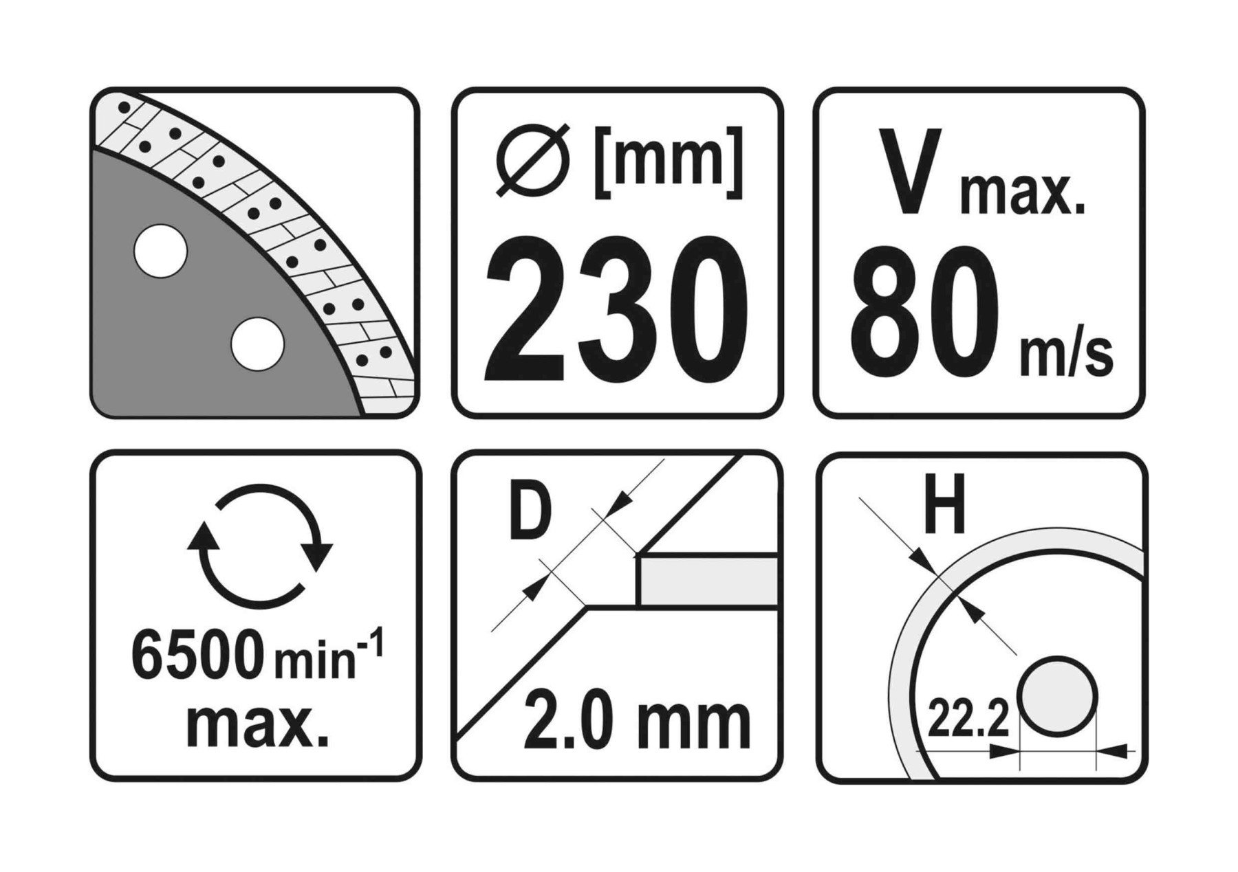 YATO Диск відрізний алмазний по гресу, кераміці "TURBO" Ø=230x2x10x22.2 мм,в мокрому і сухому режимі