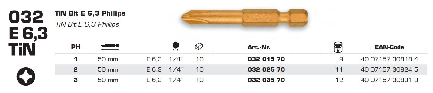 Бита FELO ( ФЕЛО ) PH2х50 мм TIN, 1/4, E 6.3, машинная