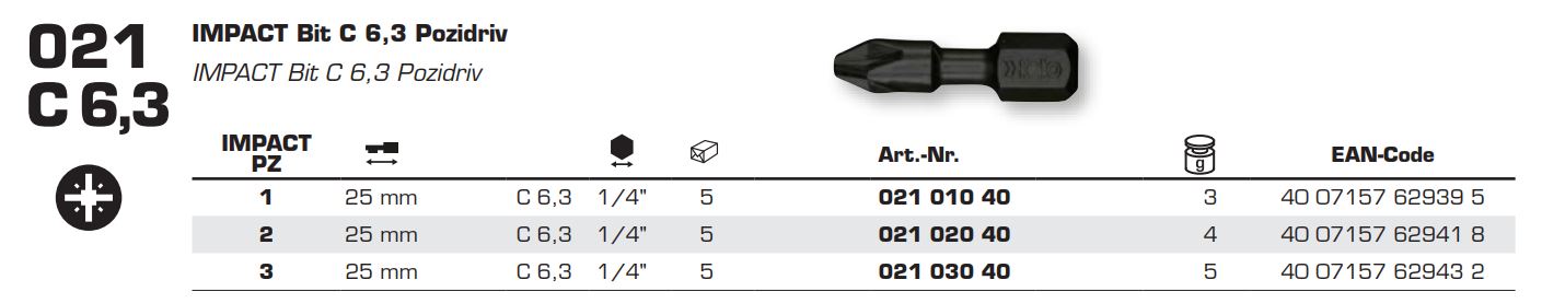 Бита FELO ( ФЕЛО ) PZ1х25 мм IMPACT, 1/4, С 6.3.