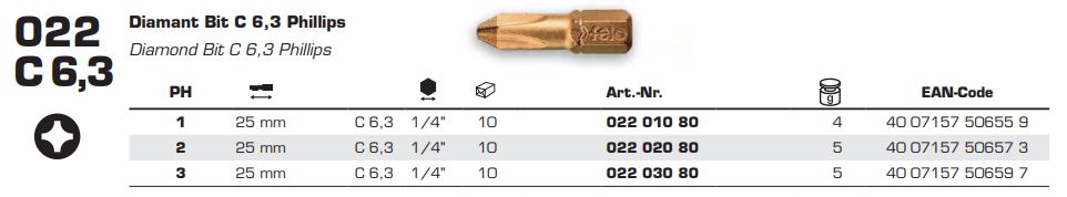 Бита FELO ( ФЕЛО ) PH2х25 мм DIAMANT, 1/4, С 6.3
