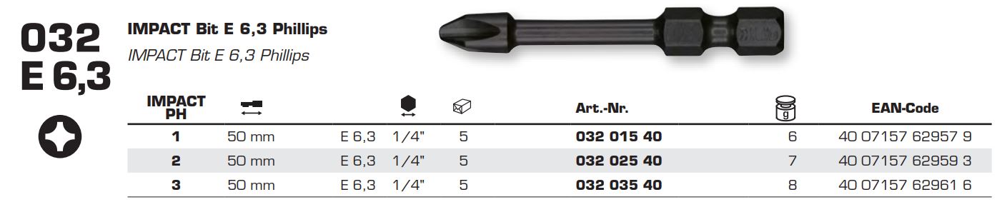 Бита FELO PH2х50 мм IMPACT, 1/4, С 6,3. (03202540)