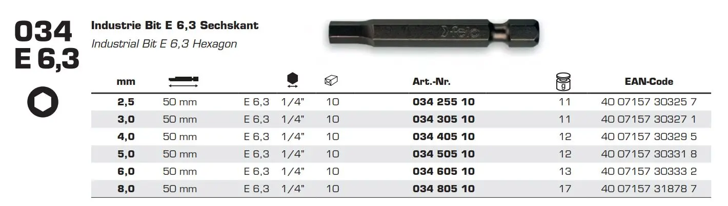 Бита FELO ( ФЕЛО ) SW 2.5х50 мм (шестигранник), 1/4, С 6.3.