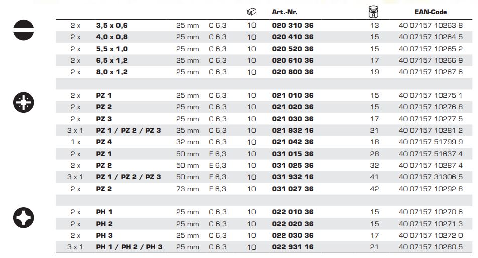 Бита FELO PH2х25 мм, 1/4, С 6,3, ВОХ (2 шт.) (02202036)