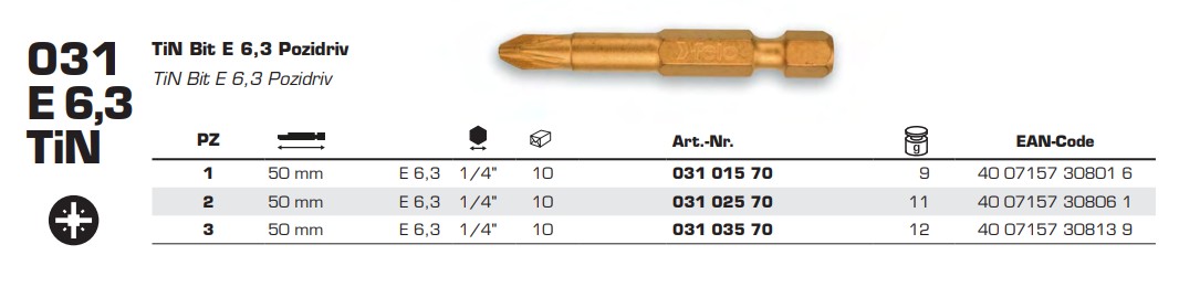 Біта FELO PZ2х50 мм, TiN (03102570)