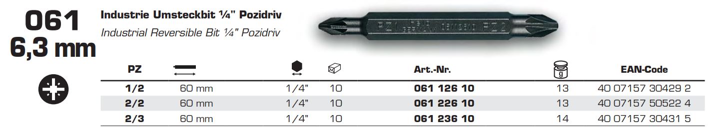 Біта двостороння FELO PZ1/PZ2х60 мм INDUSTRIAL (06112610)