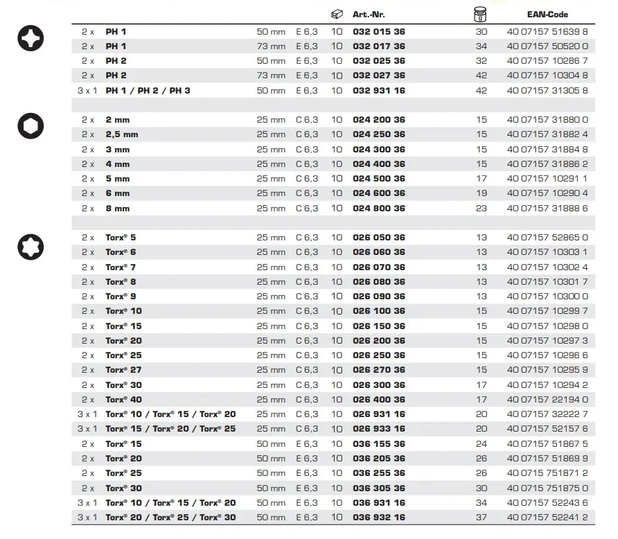 Бита FELO INDUSTRIAL TORX20х25 мм, шестигранный хвостовик 1/4, форма С 6,3, блистер 2 шт (02620036)