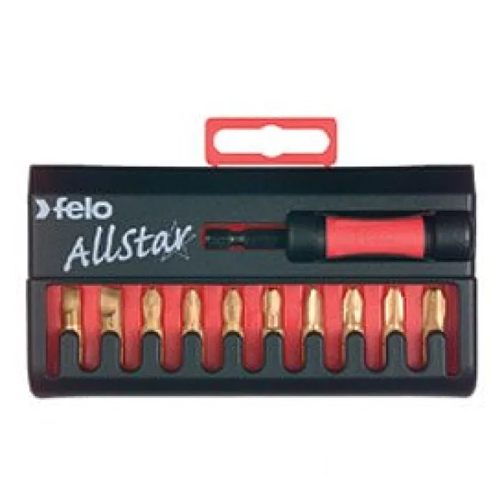 Набір біт ALLSTAR з магнітним тримачем 1,0х5,5 /1,2х6,5 /PZ2 /PZ3 /PH2 /PH3, 1/4', форма С 6,3х25 мм, магнітний тримач FELO STAR форма Е 6,3х70 мм з обмежувачем глибини загвинчування