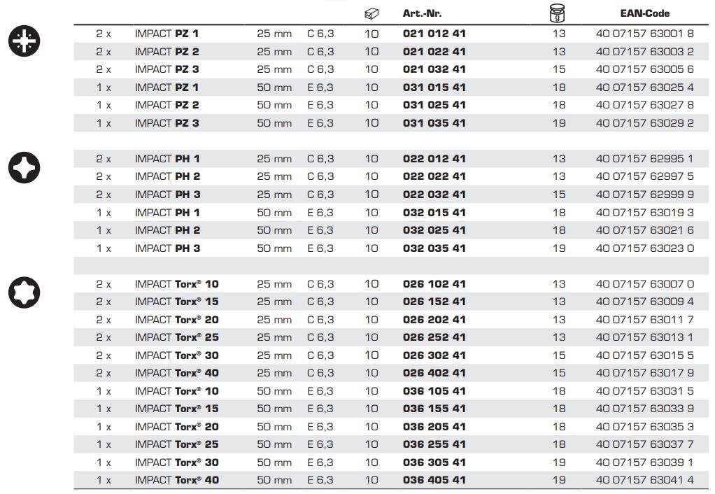 Бита FELO IMPACT PH2х25 мм, шестигранный хвостовик 1/4, форма C 6,3, блистер 2 шт (02202241)
