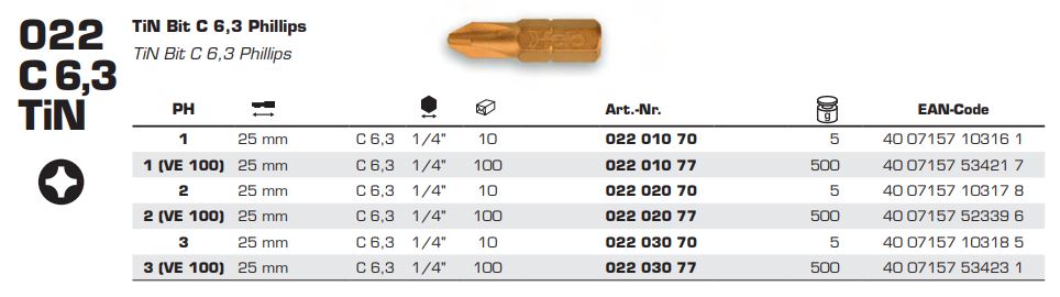 Бита FELO ( ФЕЛО ) PH2х25 мм TIN, 1/4, С 6.3