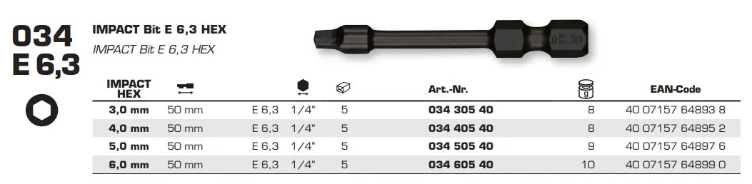 Бита FELO серия Impact HEX 5,0х50 (03450540)