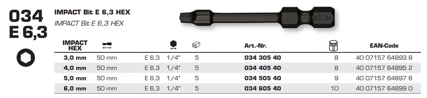 Бита FELO серия Impact HEX 6,0х50 (03460540)
