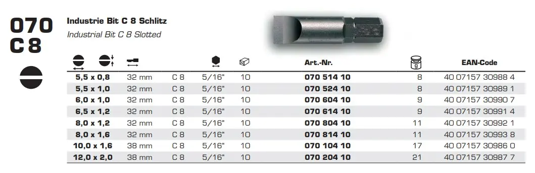 Бита FELO ( ФЕЛО ) 10.0х1.6х38 мм, 5/16, C 8