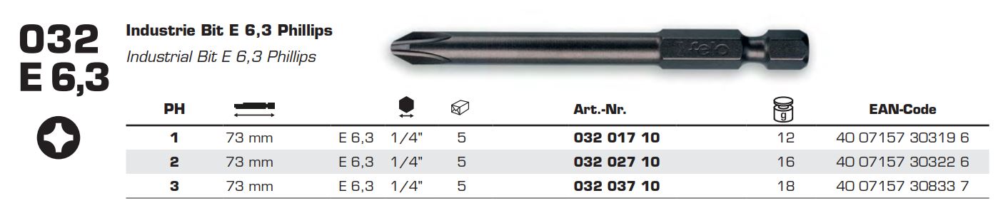 Бита FELO ( ФЕЛО ) PH2х73 мм, 1/4, E 6.3