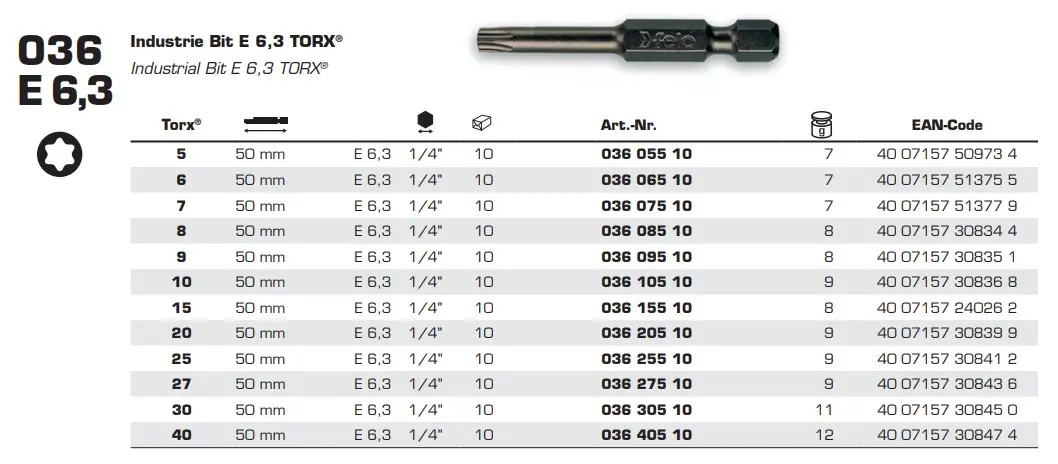 Бита FELO ( ФЕЛО ) TORX 25х50 мм, 1/4, E 6.3.