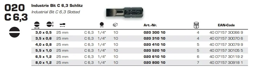 Бита FELO 3,5х0,6х25 мм, 1/4, C 6,3 (02031010)