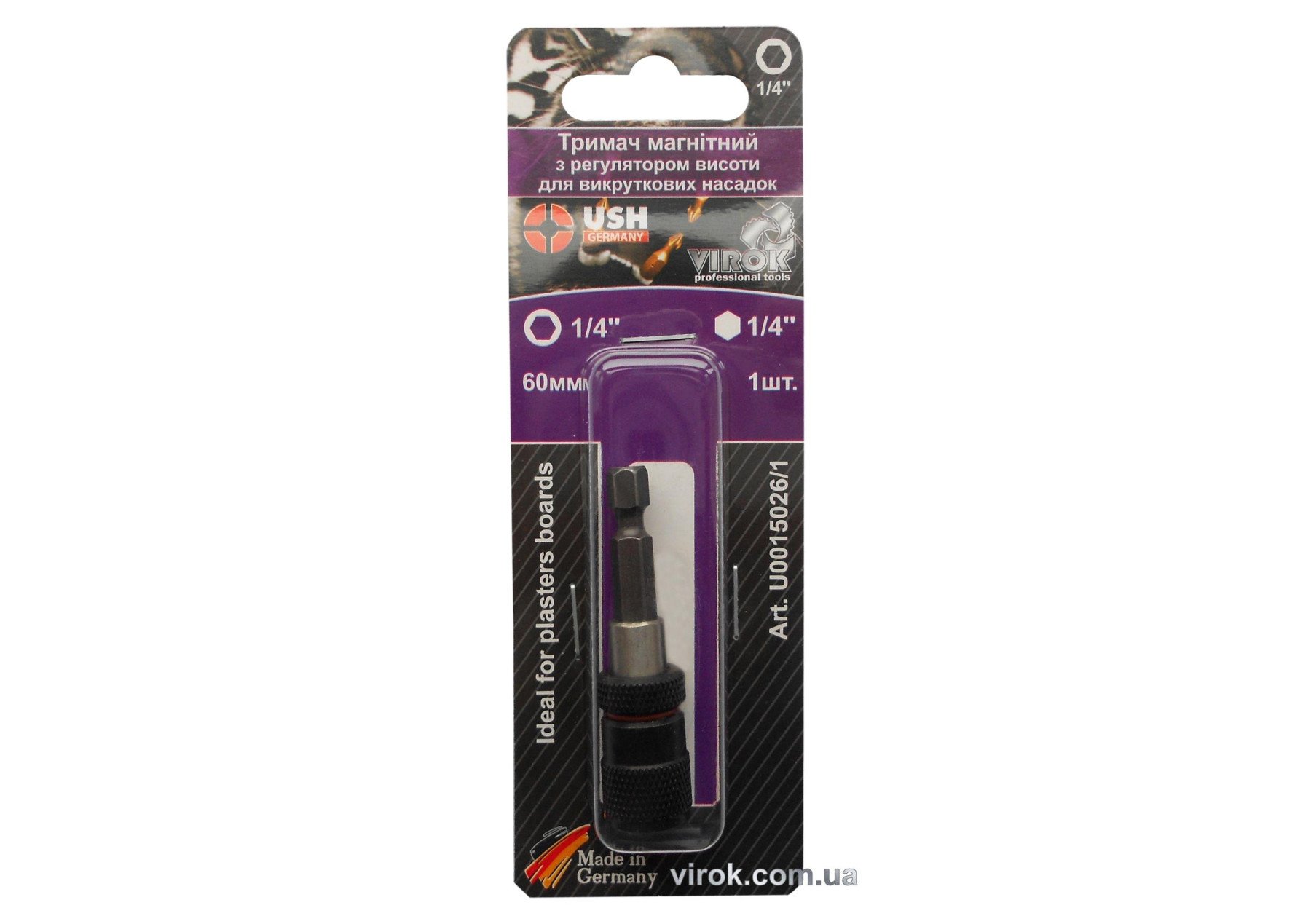 USH Тримач магнітний насадок викруткових 1/4", L=60 мм, швидкозатискний+рег.висоти Уп.1шт(блістер) | U0015026/1