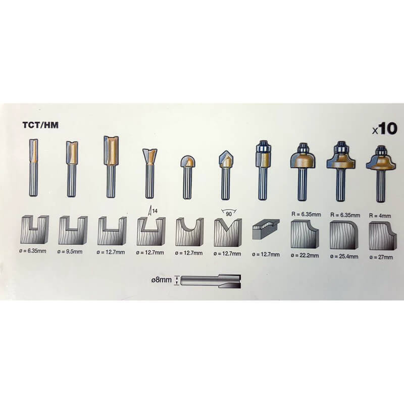✔ 10 шт. фрез в наборе делают его универсальным в использовании.Технічні характеристики STA80020