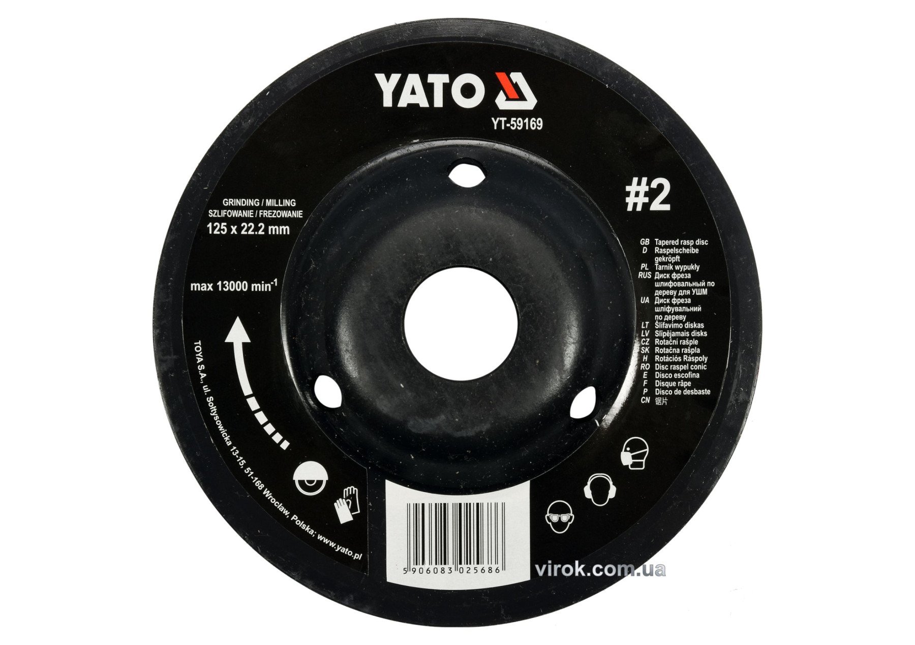 YATO Диск-фреза шліфувальний по дереву, ПВХ, гіпсу; Ø=125/22.2 мм, шорсткість №2