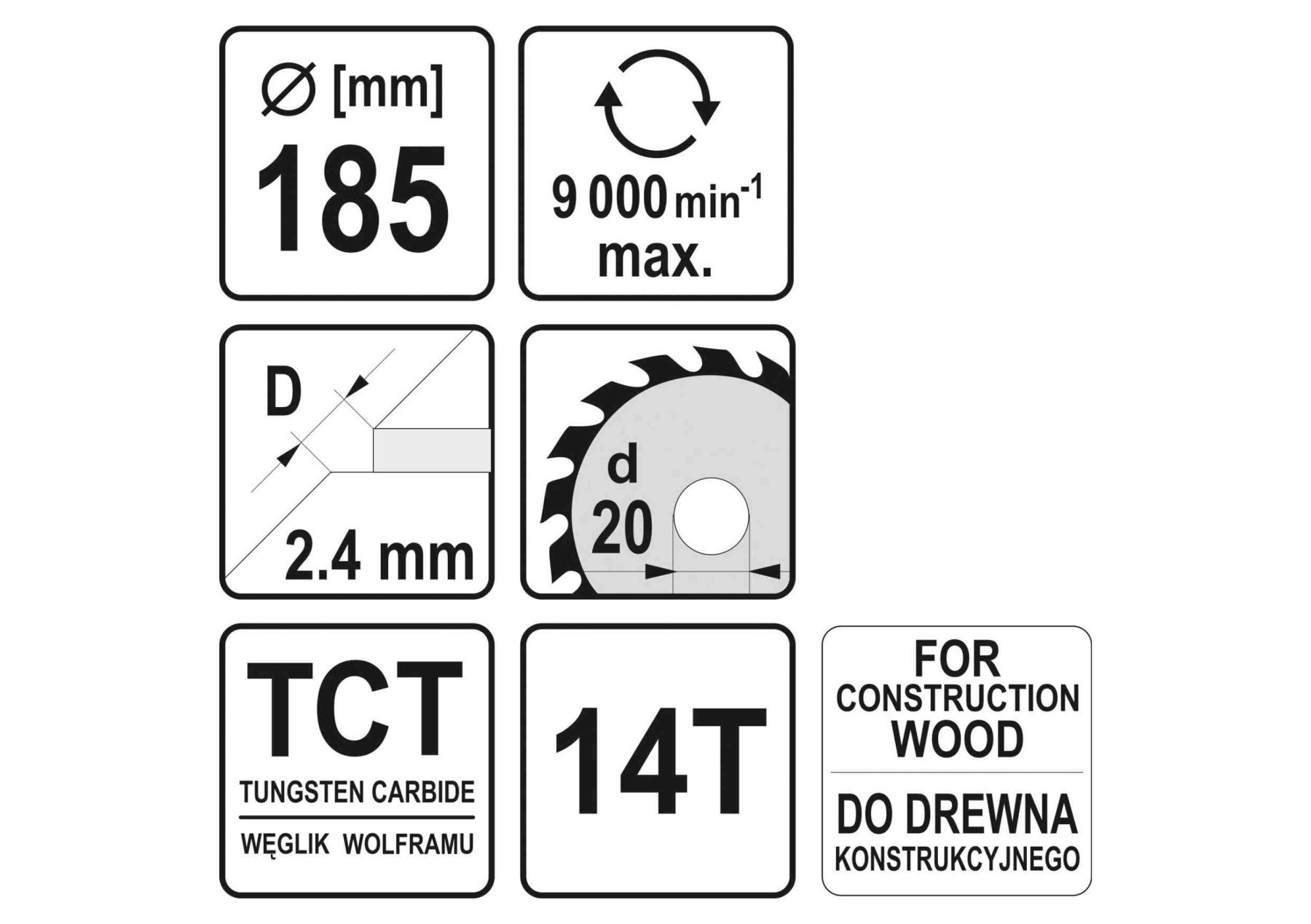 YATO Диск пиляльний по дереву з цвяхами: Ø= 185х2.4x20 мм, 14 зубців, R.P.M до 9000 1/хв
