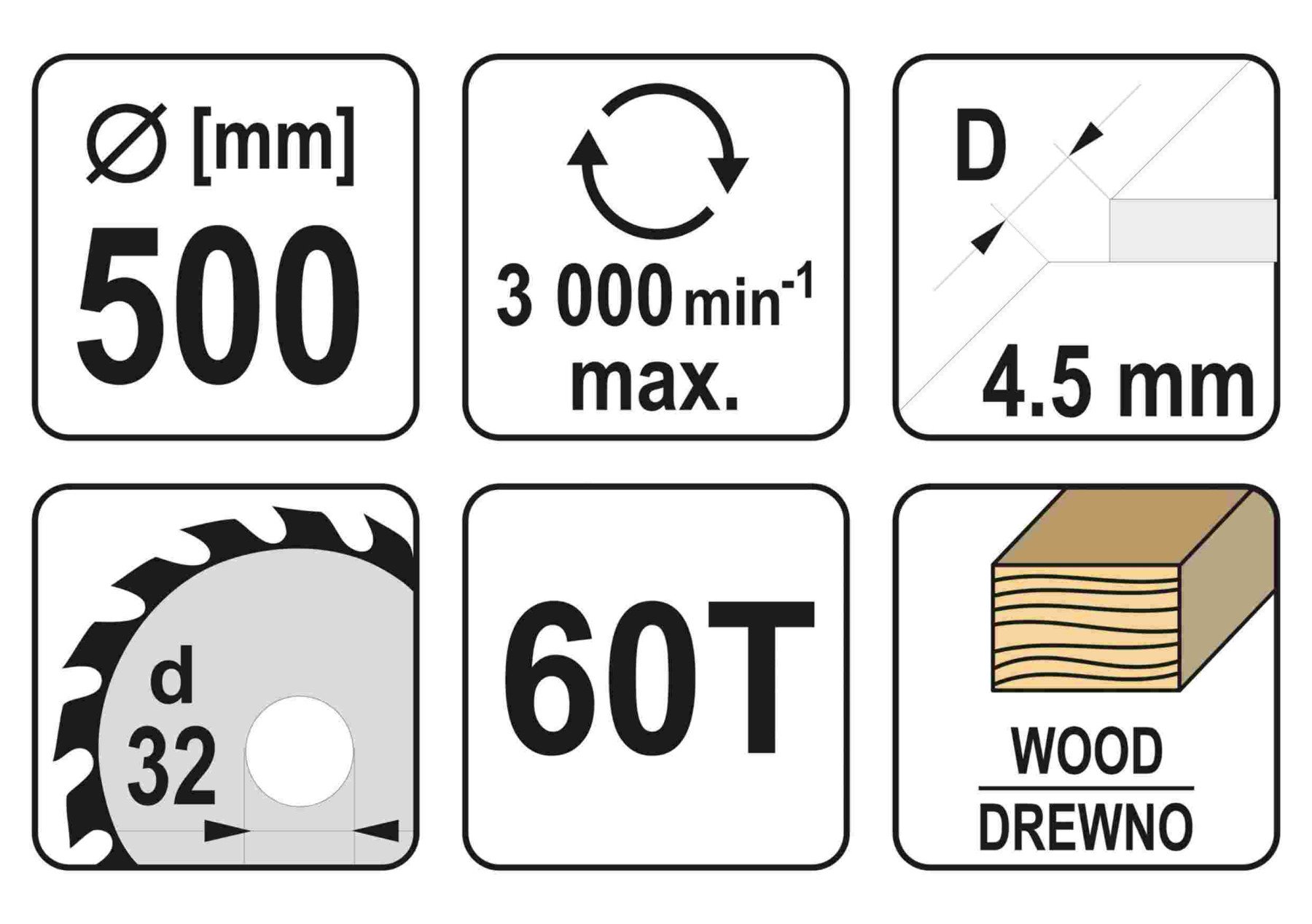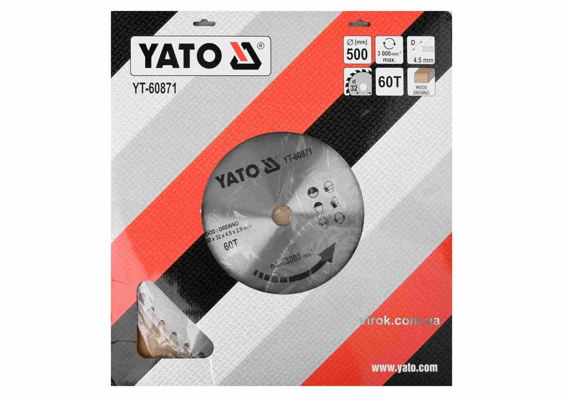 YATO Диск пиляльний по дереву: 500x32x4.5 мм, 60 зубців, R.P.M до 3000 1/хв