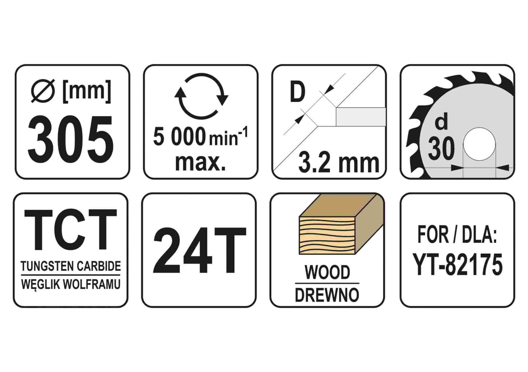 YATO Диск пиляльний победітовий по дереву: 305x30x3.2x2.2 мм, 24 зубці, R.P.M до 5000 1/хв