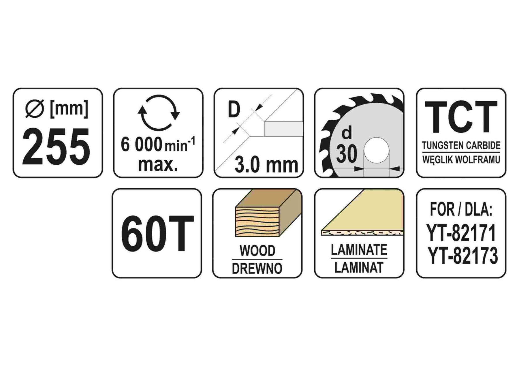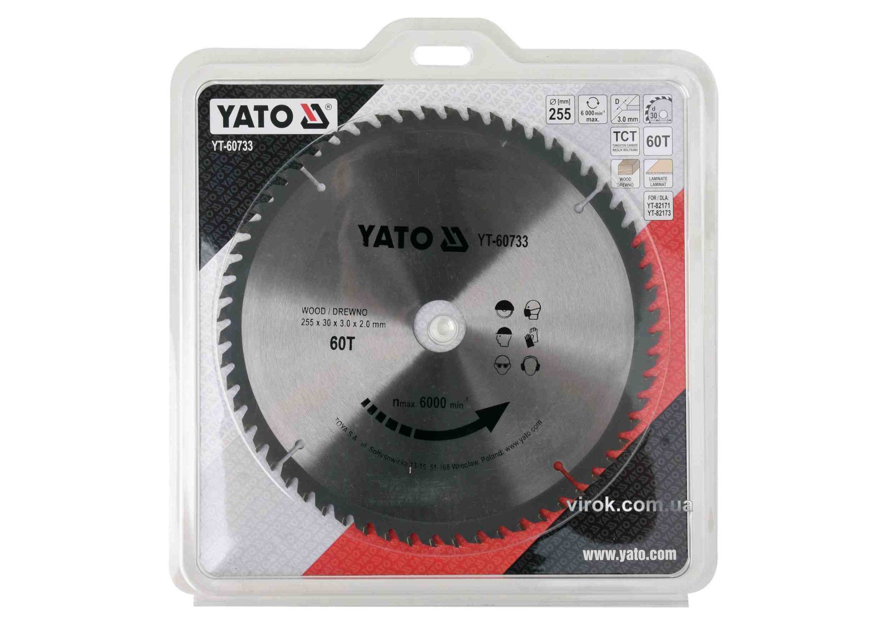 YATO Диск пиляльний победітовий по дереву: 255x30x3.0x2.0 мм, 60 зубців, R.P.M до 6000 1/хв