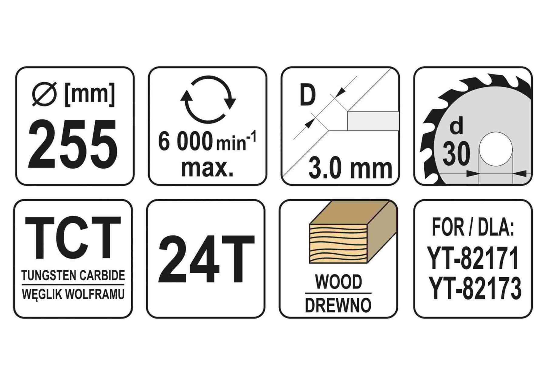 YATO Диск пиляльний победітовий по дереву: 255x30x3.0x2.0 мм, 24 зубці, R.P.M до 6000 1/хв