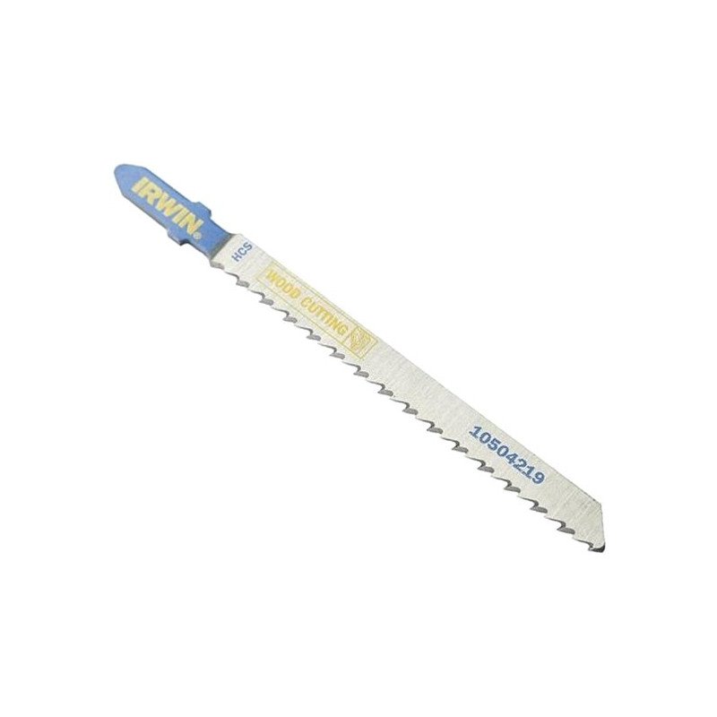 Пилка для лобзика по дереву IRWIN BJSB, 5шт T101B Пилка для електролобзика Т101В виготовлена з високовуглецевої сталі HCS. Хвостовик BOSCH. Призначена для швидкого прямолінійного розпилювання твердих та м'яких сортів дерева, пластику, ДСП товщиною від 6 до 60 мм.