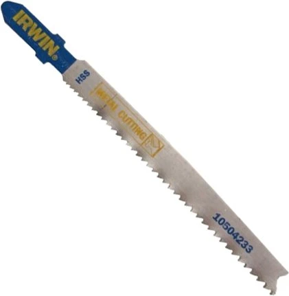 Пилка для лобзика по металу IRWIN BJSB, 5шт T123X Пилка по металу для електролобзика виготовлена з швидкорізальної сталі HSS. Хвостовик BOSCH. Пилка призначена для прямого розпилювання металу, кольорового металу, алюмінію та металевих листів товщиною від 1,5 до 3 мм. Пилка для електролобзика для роботи по металу HSS вальцьовані зубці мають більший термін служби порівняно з аналогами та забезпечують довгий термін служби Матеріал HSS - швидкорізальна сталь для різання металу, алюмінію та кольорового металу Має Т-подібний хвостовик Упаковка: 5 шт