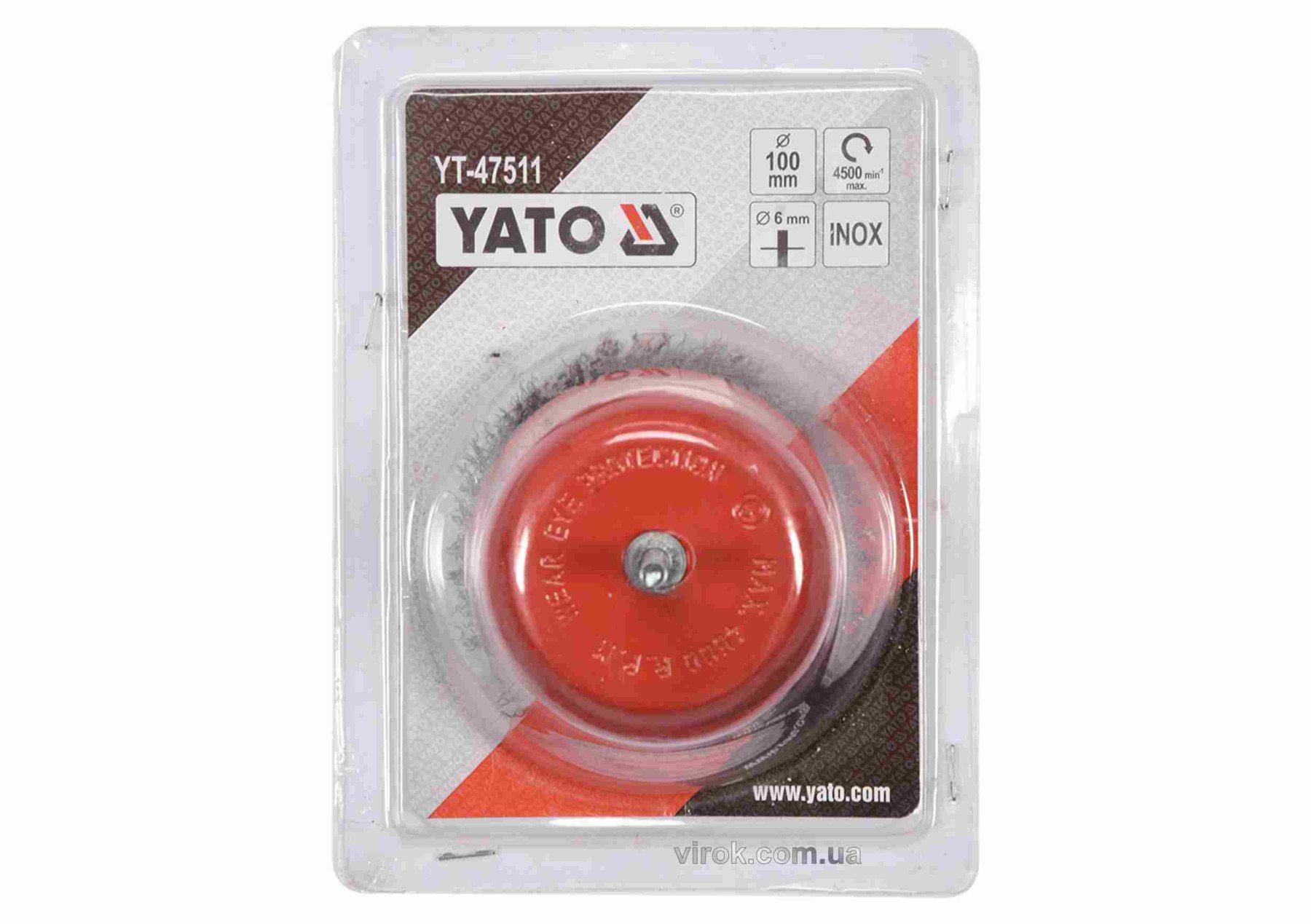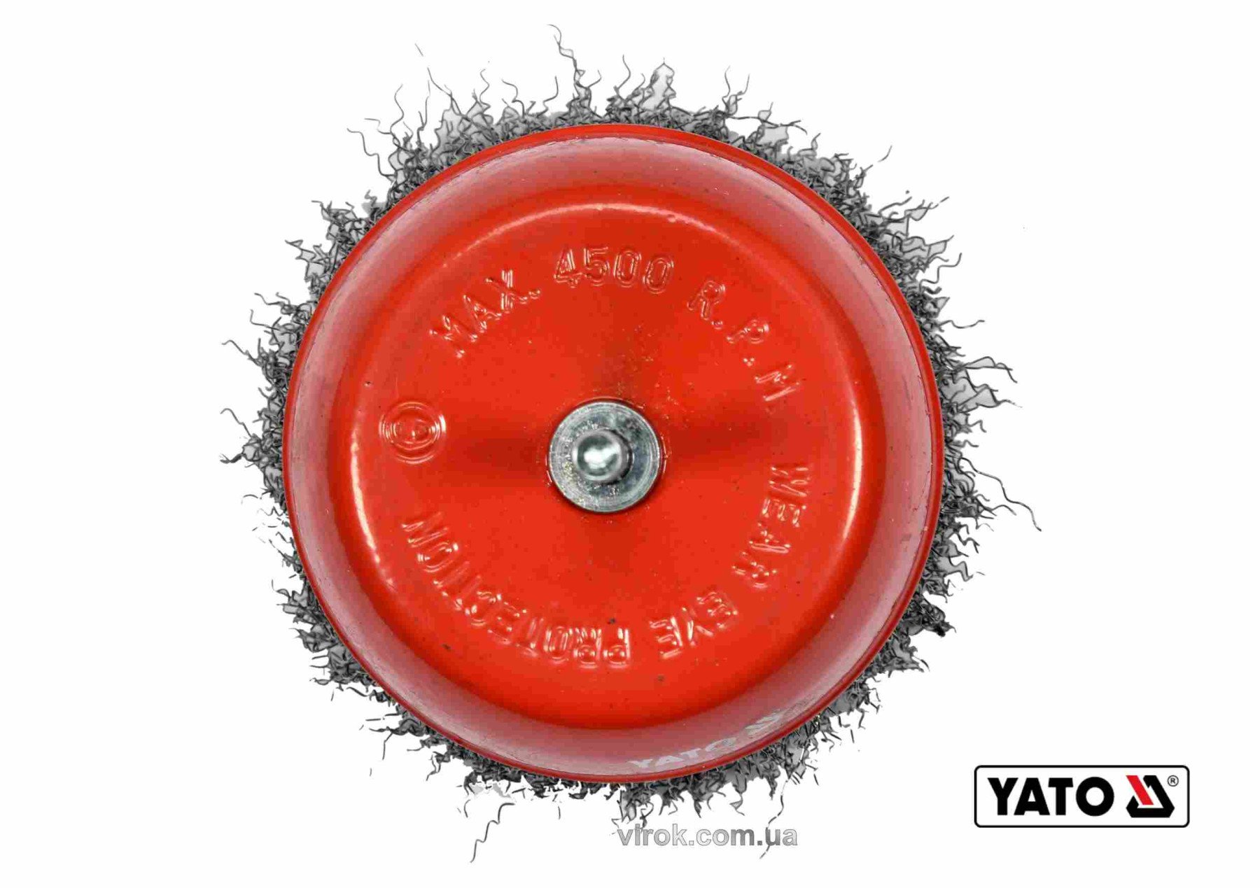 YATO Щітка - крацовка Чашка Ø=100 мм . сталь. шпиндель 6 мм. 4500 об/хв