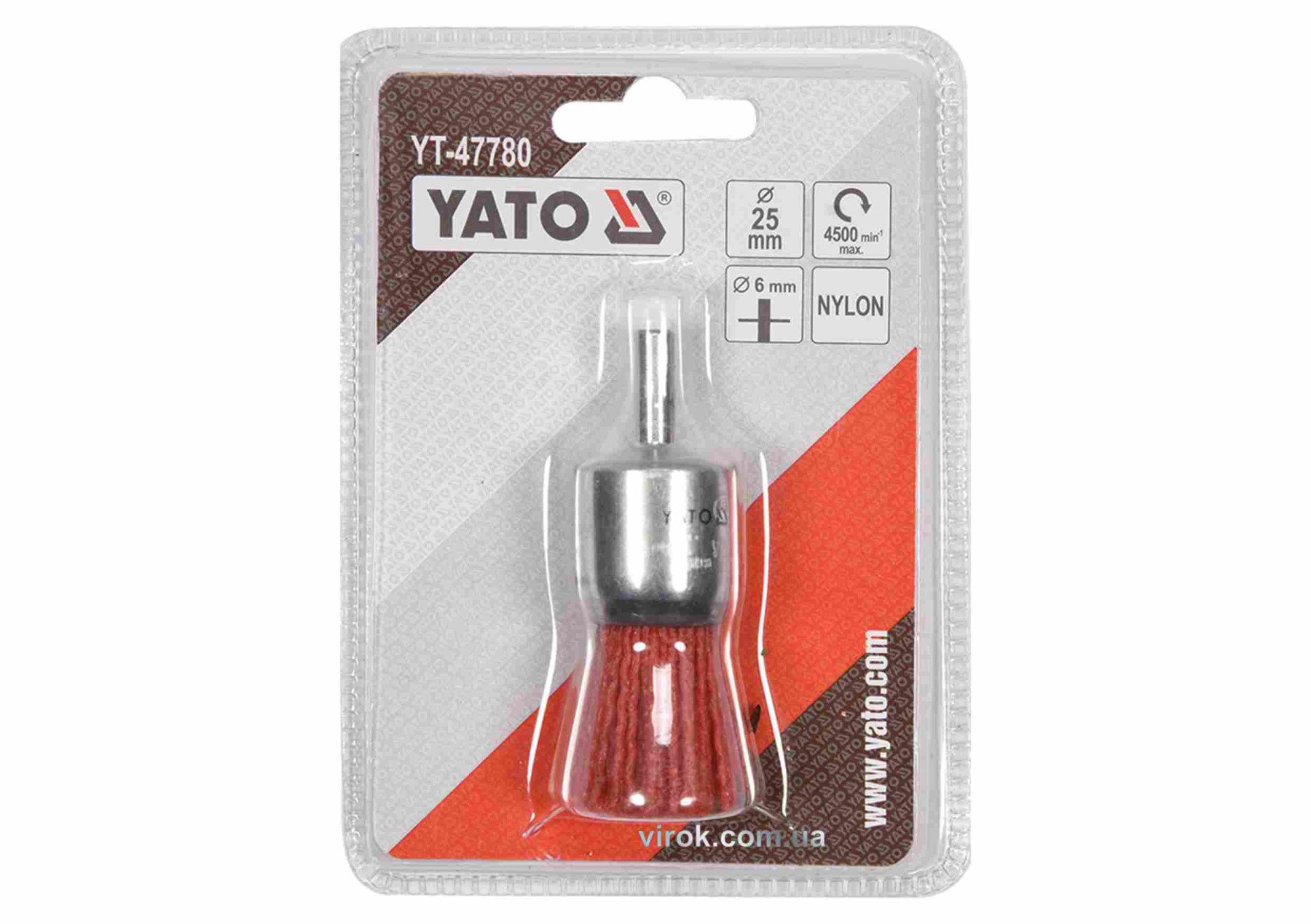 YATO Щітка зачисна з нейлоновим ворсом, до дрилі : Ø=25 мм, зі шпинделем Ø=6 мм