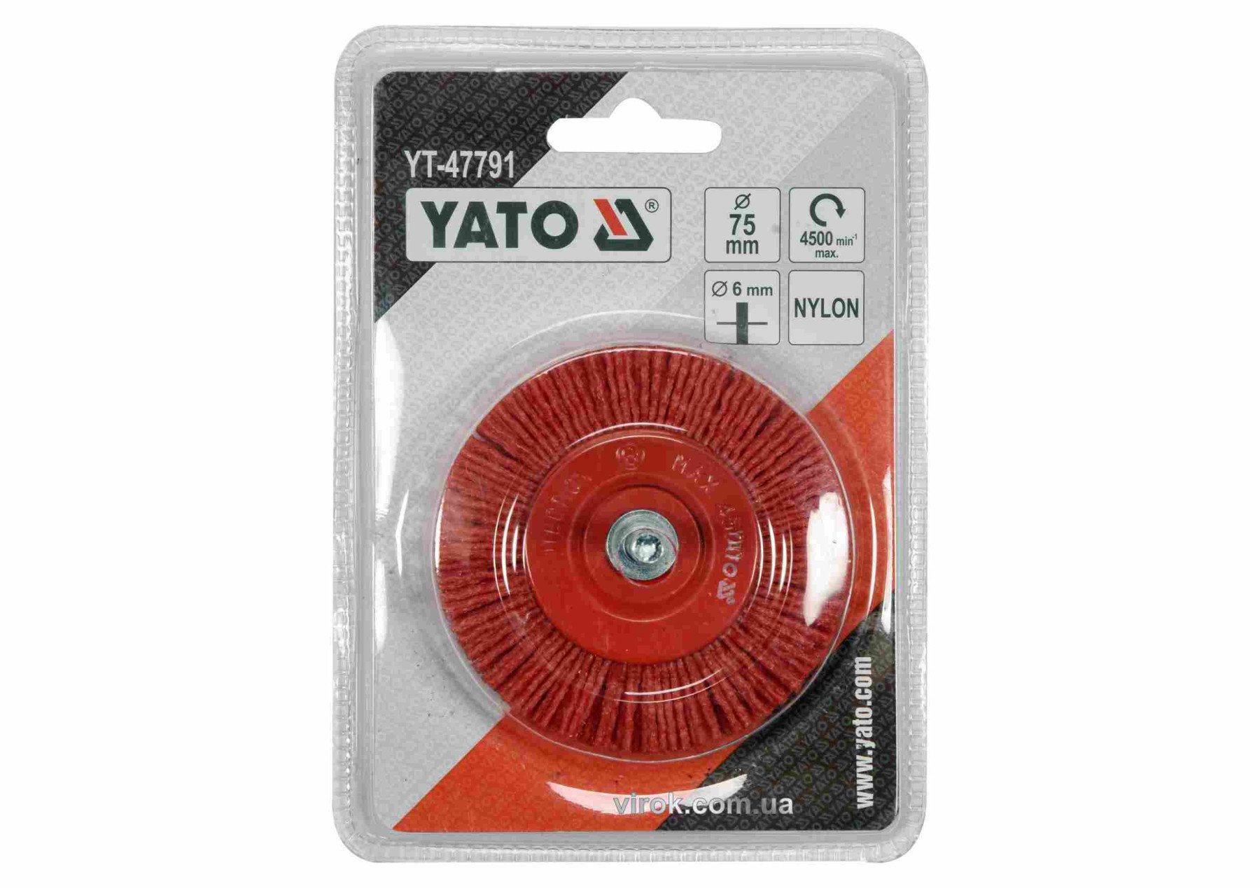 YATO Щітка зачисна з нейлоновим ворсом, дискова до дрилі : Ø=75 мм, зі шпинделем Ø=6 мм