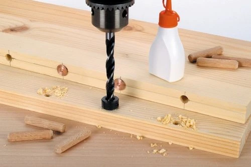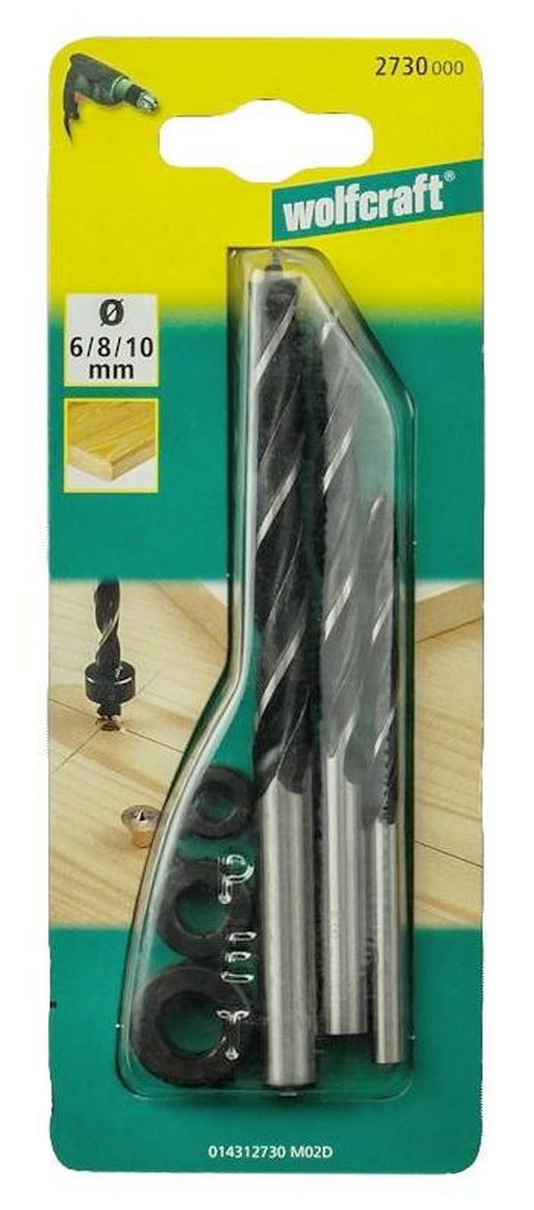 - В набор входят 3 сверла с центрирующим острием и 3 упора ограничения глубины.